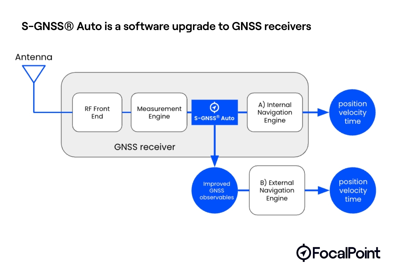 FocalPoint’s S-GNSS® Auto software boosts GNSS reliability and accuracy in urban canyons and forest roads, where traditional solutions fall short.
