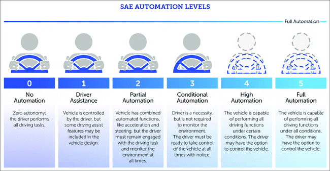 Levels of automation set forth in SAE J3016 standard (SAE International 2016). Reprinted from NHTSA (2017).