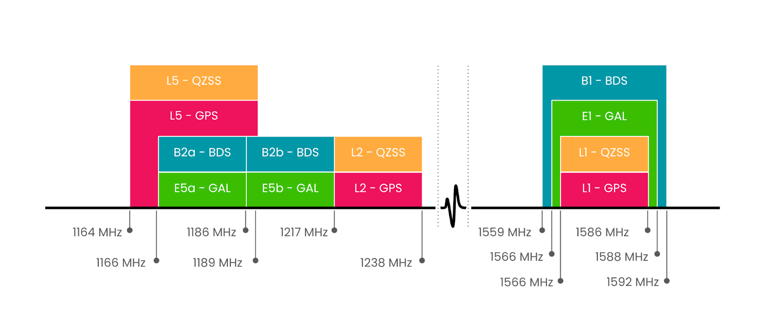 Figure 1. An overview of the GNSS frequency spectrum [1]