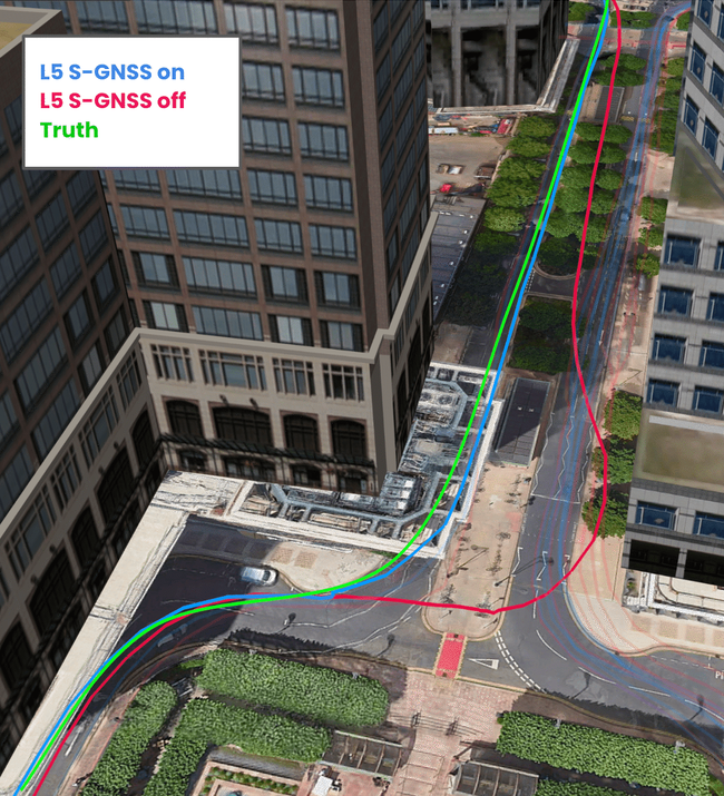 This recent trial, made possible thanks to funding from the European Space Agency NAVISP program, demonstrated 2-3x improvement of GNSS position accuracy using S-GNSS® Auto in dense urban environments. While accuracies of 1m-2m are possible with traditional GNSS in open sky environments, in dense urban environments or areas under foliage, this is not usually possible.